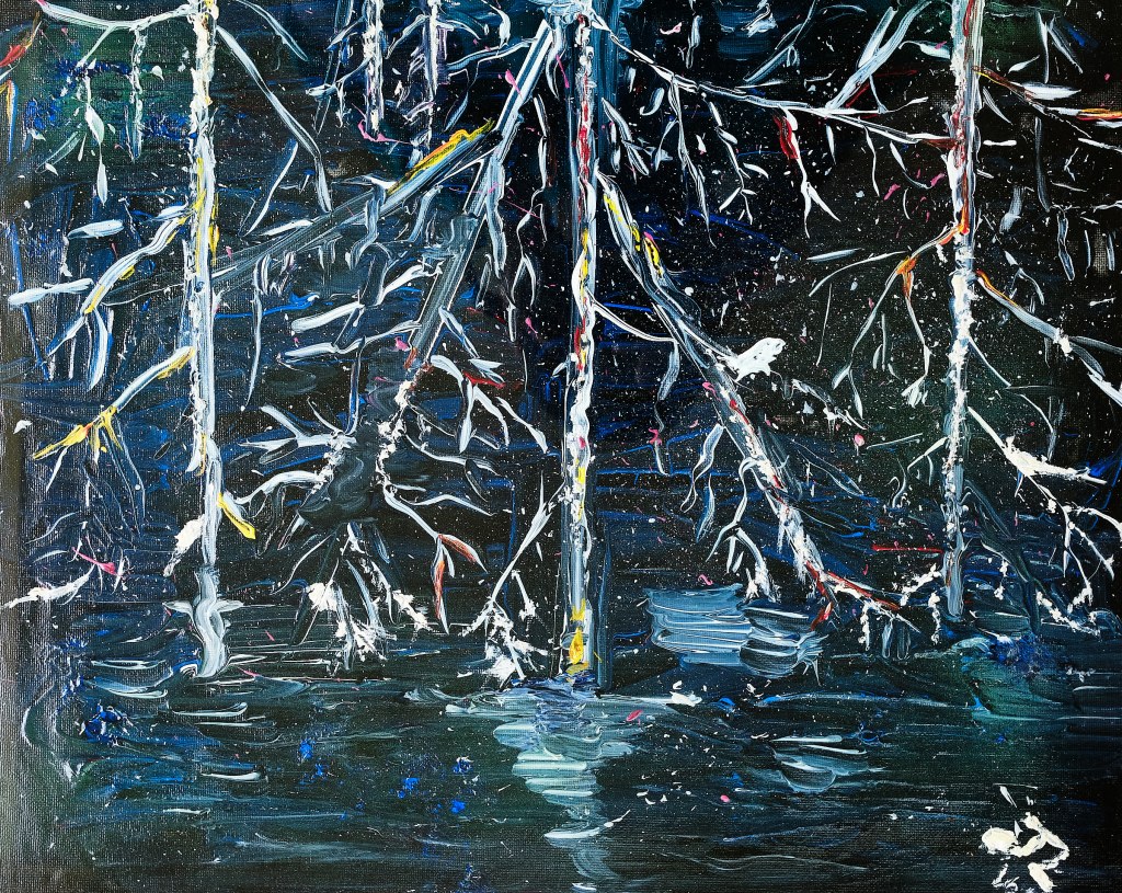 • ‘Mangrove’ 2020 – Acrylic on canvas, Junnel Lewis‘Pretty Pink Hibiscus’ – This drawing is the representation of love, peace, happiness, patience, calm and joy. It is the fourth of hibiscus watercolour collection.‘Mangrove’ – This is one of the three pieces that represents the mind, the body and soul/heart. Mangroves represent the artist’s body as the roots gets its nourishment from the soil (heritage). The Mangroves is important to ecosystem and it prevents erosion. Mangroves also provide natural infrastructure and protection to nearby populated areas by preventing erosion and absorbing storm surge impacts during extreme weather events such as hurricanes. In Trinidad and Tobago, it is important to protect our ‘body’.”For more on Cleo and Junnel, follow them on @louise.nickie and @junnelsartwork© 2021 Office of the Parliament. All rights reserved.