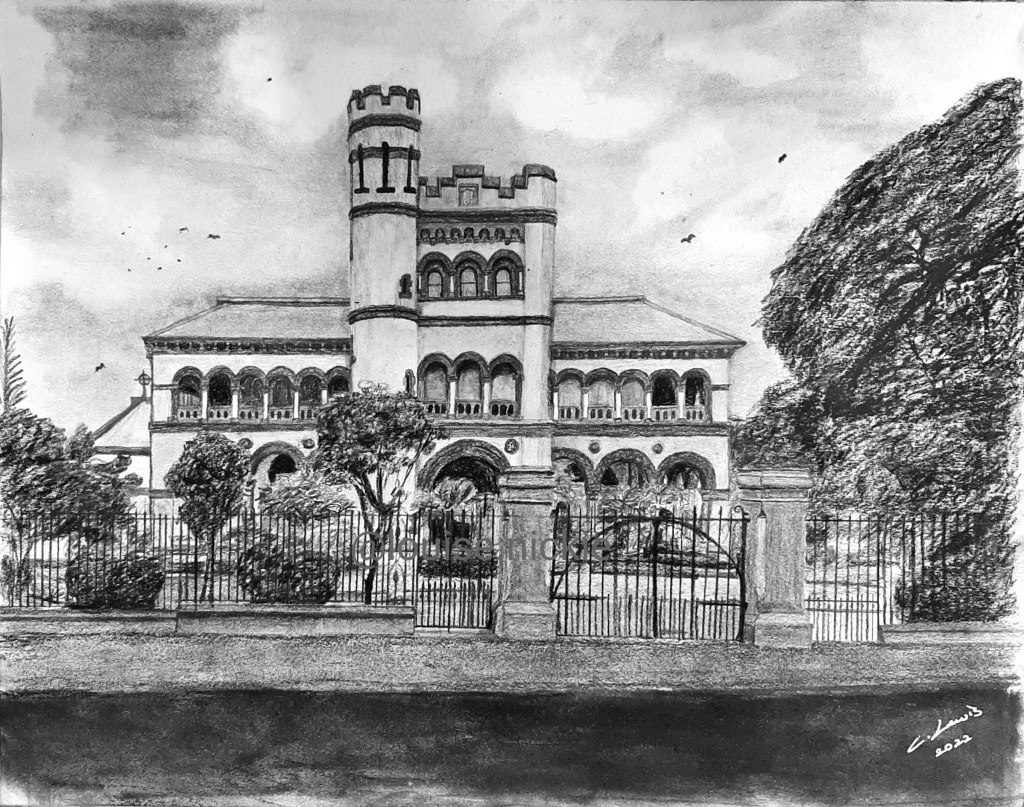 This building is one of Magnificent Seven historical buildings (Located: Queen’s Park Sanvannah). This piece is charcoal and graphite pencils on acid free paper.